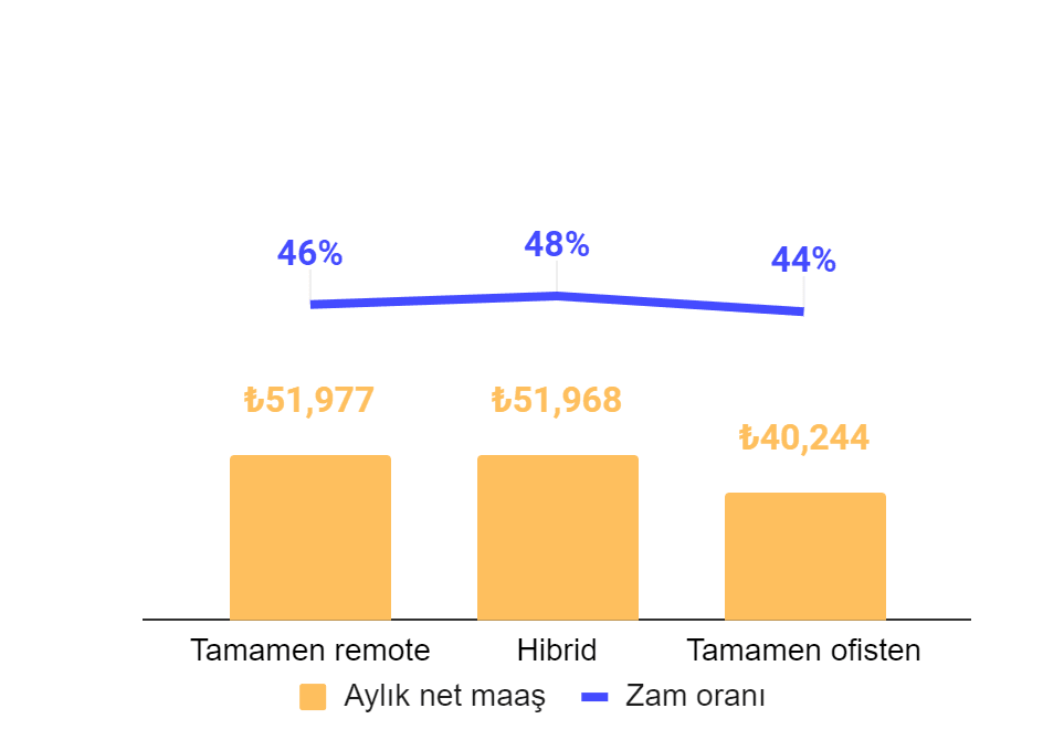 Tamamen ofisten çalışan yazılımcıların maaş ve zam seviyeleri diğerlerine göre daha düşük.