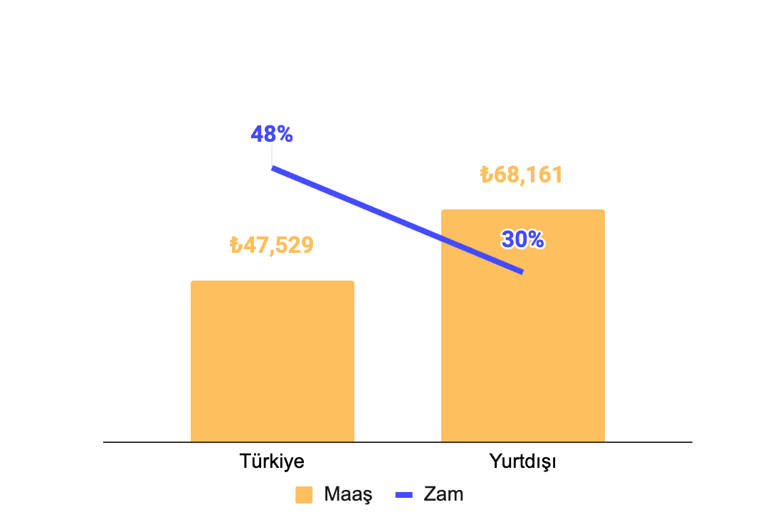 Türkiye merkezli şirketlerde çalışan katılımcılar en düşük aylık net maaş miktarına, bununla birlikte en yüksek zam oranına sahip.