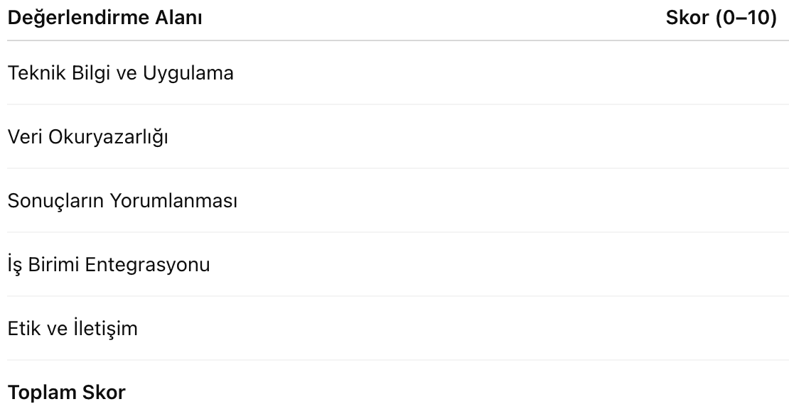 Aşağıda yer alan skor kartı, şirketinizde AI okuryazarlığını ölçmek için kullanılabilir: