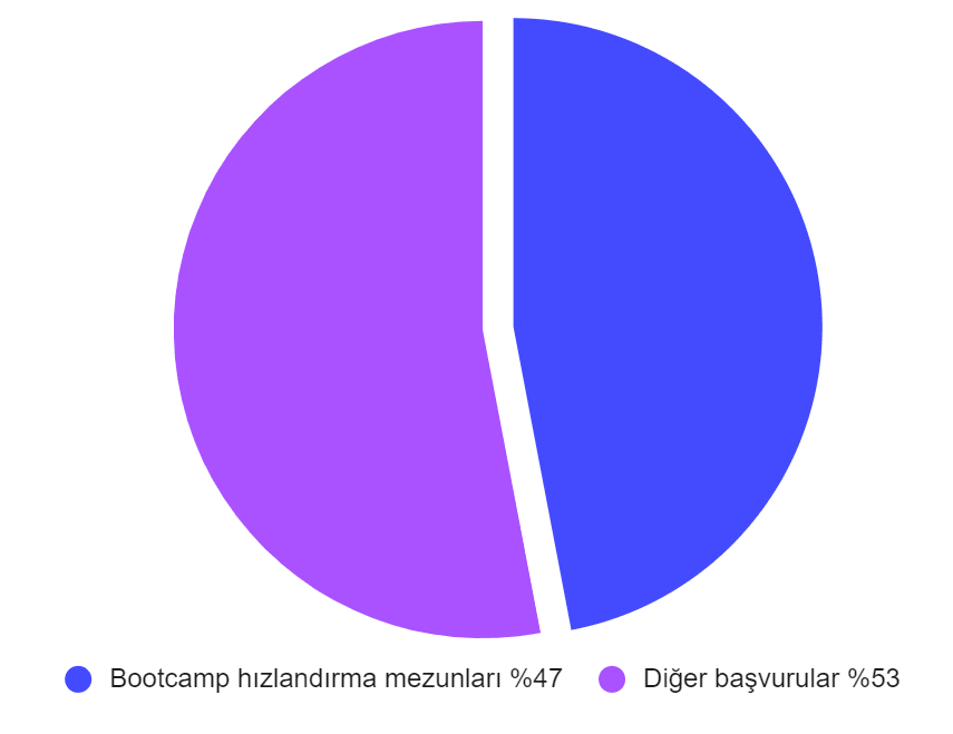 Hızlandırma programına katılan katılımcıların %47’si şirket programlarımıza girmeye hak kazanıyor!