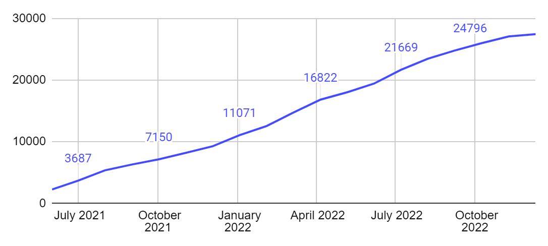 App.patika.dev kurulduğu andan itibaren çok sevildi ve kurulduğu ilk aydan itibaren platforma kaydolan ve aktif öğrenen sayısı artarak devam etti.