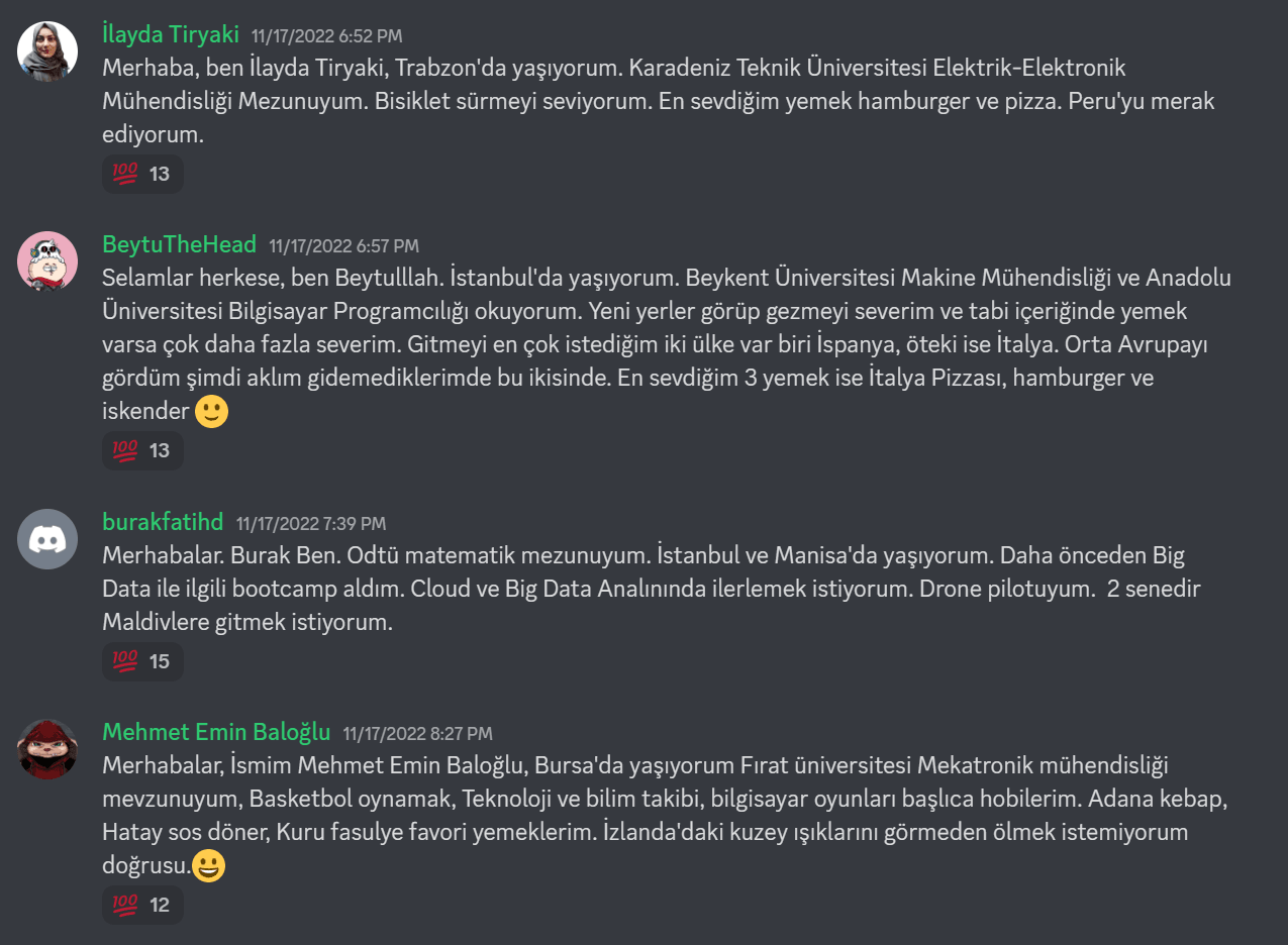 App.patika.dev’de öğrenmenin devam etmesinin en büyük sebeplerinden biriyse kuşkusuz aidiyet hissi, toplulukla birlikte öğrenme, yalnız olmadığının hissedilmesi ve ihtiyaç duyulduğu noktalarda kullanıcıların desteğe rahat bir şekilde ulaşabilmesi. Topluluk desteği discord üzerinde her patika için açılan kanallarda aktif bir şekilde devam ediyor. Discorda üye sayısının ve atılan mesaj sayısının artması da birbirlerine soru sorma ve yardım etme kültürünün geliştiğinin bir göstergesi.