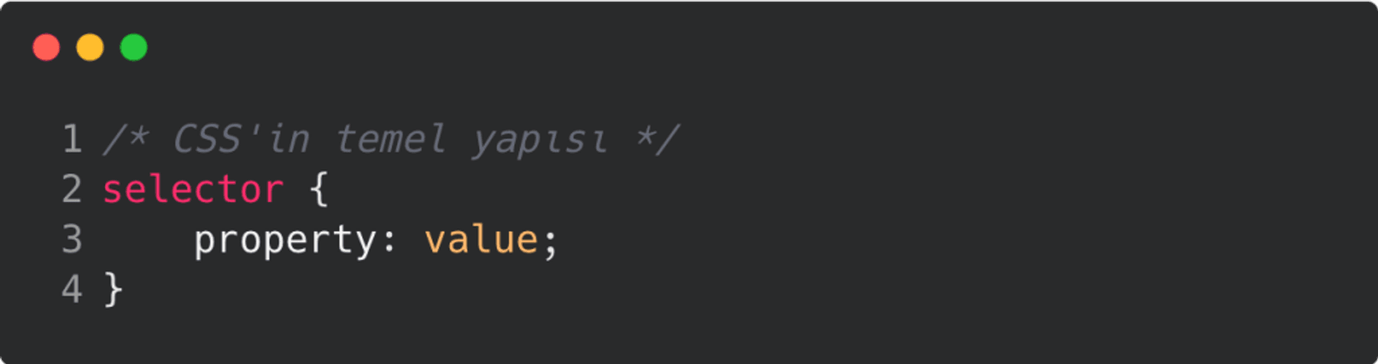 CSS, seçiciler (selectors) ve bildirim blokları (declaration blocks) kullanılarak yapılandırılır. Seçiciler, stil verilecek HTML öğelerini tanımlar ve bildirim blokları bu öğeler için uygulanacak stil özelliklerini içerir.