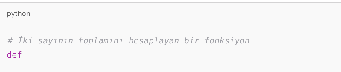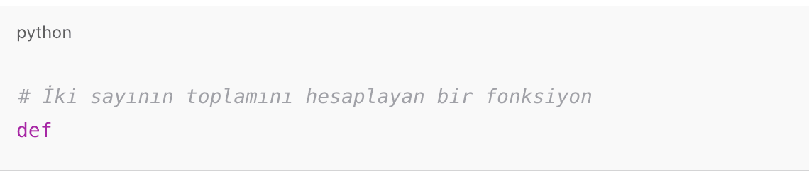 Copilot, bu açıklamadan yola çıkarak fonksiyonu otomatik olarak tamamlayabilir: