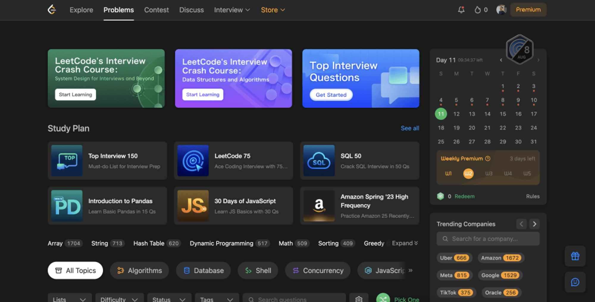 LeetCode, yazılımcılar arasında en çok bilinen kodlama egzersizi platformlarından biridir. Özellikle teknik mülakatlara hazırlananlar için vazgeçilmez bir kaynak olan LeetCode, farklı zorluk seviyelerinde binlerce kodlama problemi sunar. LeetCode, kullanıcıların belirli programlama dillerinde kodlama antrenmanı yapmalarına ve çözümlerini anında test etmelerine olanak tanır. Platformda yer alan mülakat simülasyonları, kullanıcılara gerçek iş görüşmesi senaryolarını deneyimleme şansı sunar. LeetCode, ayrıca, kullanıcılarına detaylı çözümler ve algoritma açıklamaları sunarak, öğrenme sürecini derinleştirir ve yazılımcıların problem çözme yeteneklerini en üst düzeye çıkarmalarına yardımcı olur.