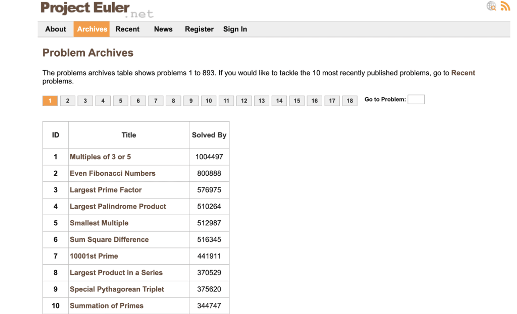 Project Euler, matematiksel problemlere dayalı kodlama egzersizi yapmak isteyenler için mükemmel bir platformdur. Platform, özellikle matematik ve algoritmalarla ilgilenen yazılımcılar için çeşitli zorlu problemler sunar. Project Euler'de yer alan problemler, kullanıcıların sadece kodlama becerilerini değil, aynı zamanda matematiksel düşünme yeteneklerini de geliştirmelerine olanak tanır. Her problem, bir algoritma geliştirme sürecini içerir ve bu da yazılımcıların derinlemesine düşünme ve problem çözme becerilerini artırır. Project Euler, yazılımcıların matematik ve bilgisayar bilimleri alanında ileri düzey bilgi sahibi olmalarına katkı sağlayacak nitelikte problemler içerir. Bu platformda çalışmak, hem teorik hem de pratik bilgi açısından zengin bir öğrenme deneyimi sunar.