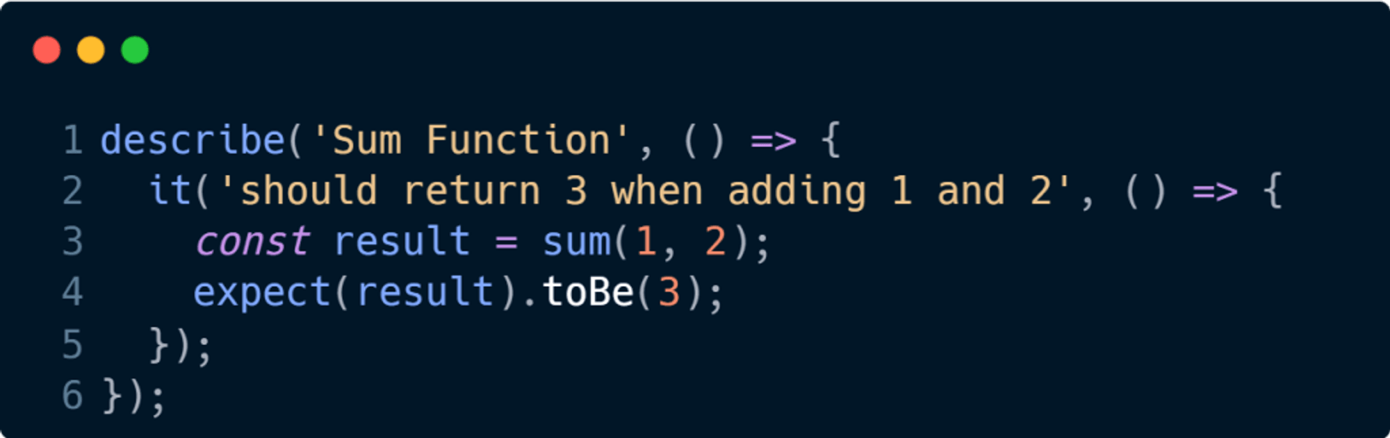 Jest ile basit bir test senaryosu oluşturmak oldukça kolaydır. Aşağıda, temel bir jest testi örneği bulunmaktadır: