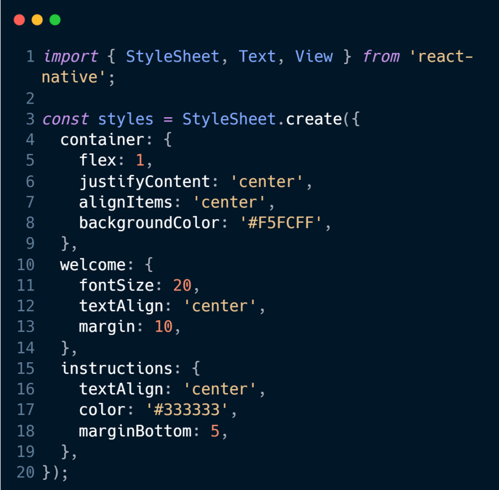Stil ve tasarım için CSS benzeri bir yapı kullanır. StyleSheet nesnesi, stil tanımlamalarını yapar ve bileşenlere uygulanır.