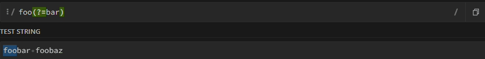 (?=...): Lookahead meta karakteri, kendisinden önceki kelimenin seçilmesi için önce bu meta karakterinin koşulunun (true) karşılanması gerektiğini belirtir. Diyelim ki, "foobar foobaz" string verisindeki "foo" kelimesini, ancak sonunda "baz" olan "foo" kelimesini almak istiyoruz. Bu durumu ifade etmek için /foo(?=bar)/g kullanabiliriz.
