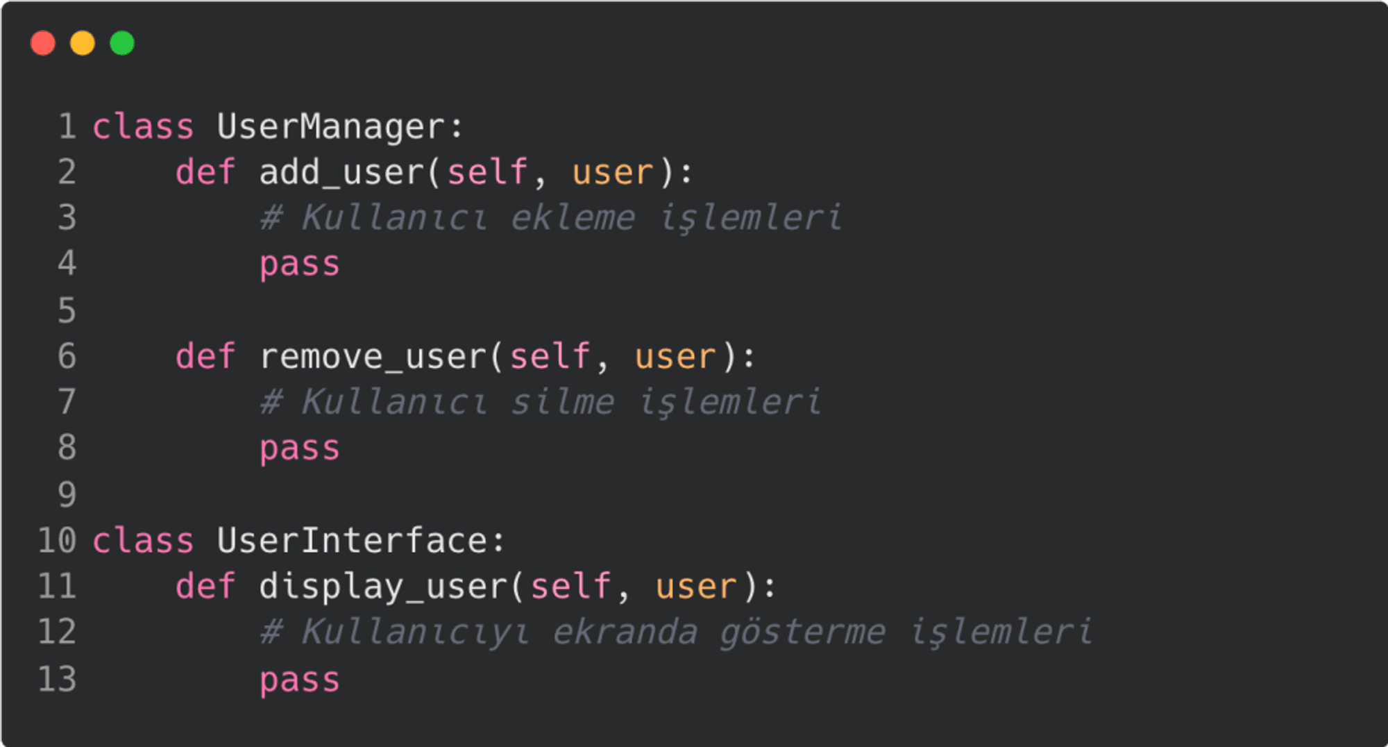 Örneğin, bir kullanıcı yönetim sistemi geliştiriyorsanız, kullanıcı verilerini yönetmek için bir sınıf, kullanıcı arayüzünü yönetmek için başka bir sınıf oluşturmalısınız. Bu sayede, değişiklik yapmanız gerektiğinde yalnızca ilgili sınıfta değişiklik yapmanız yeterli olur, diğer sınıflar etkilenmez.
