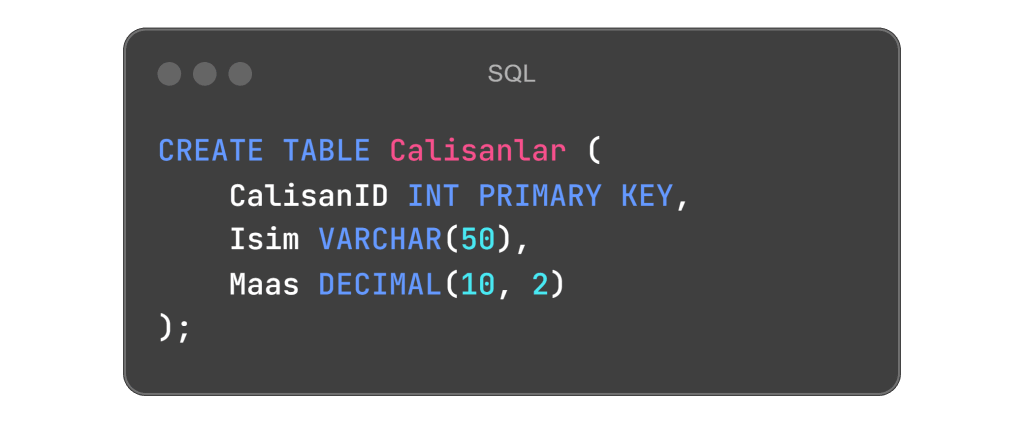 1. Veri Tanımlama Dili (DDL - Data Definition Language)