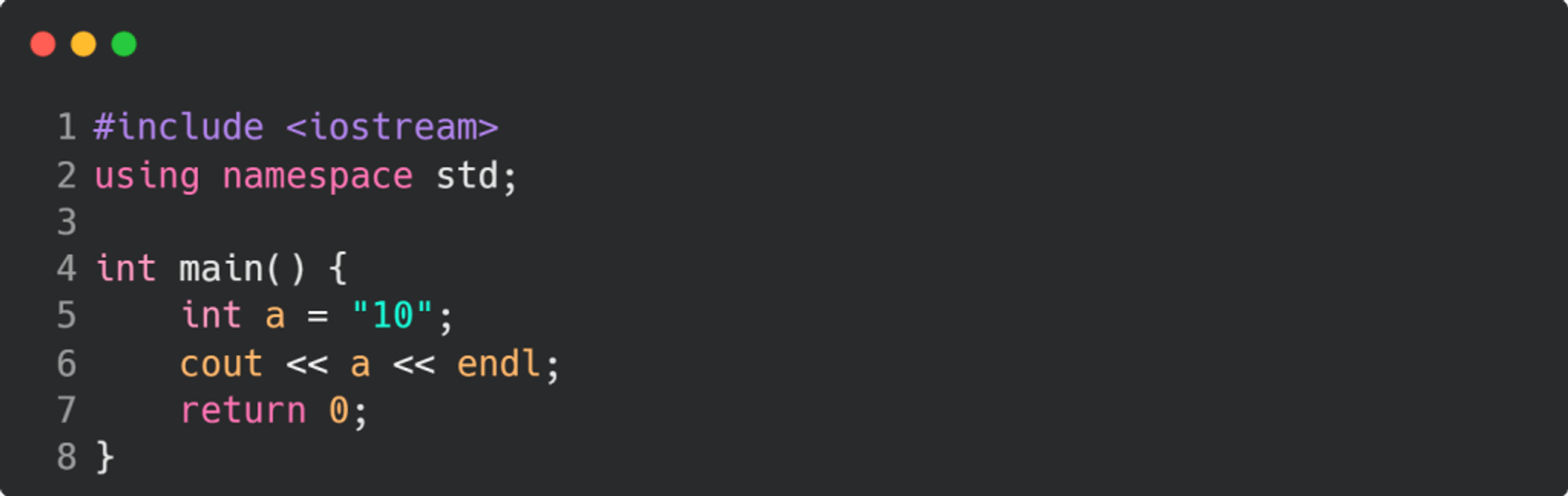 Yukarıdaki C++ kodunda, int a = "10"; satırında tür uyumsuzluğu hatası vardır. Derleyici bu hatayı tespit eder ve aşağıdaki hata mesajını verir: