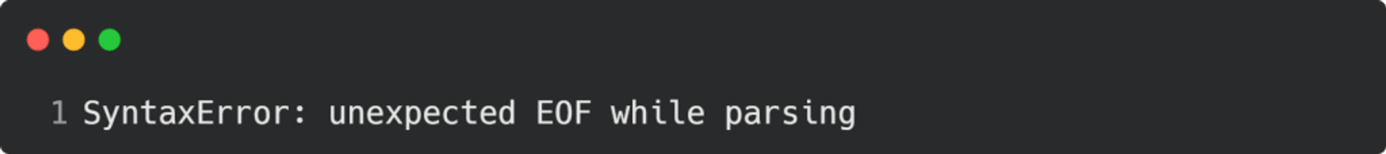 Yukarıdaki kod parçasında, print fonksiyonunun son parantezi eksiktir. Bu, Python yorumlayıcısı tarafından tespit edilir ve aşağıdaki hata mesajını alırsınız: