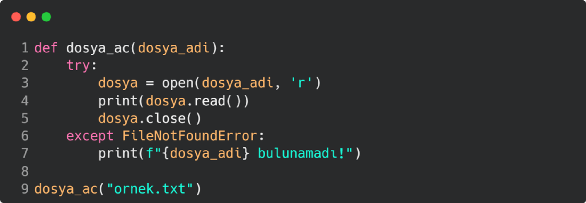 Hata Yakalama Örneği (Python):