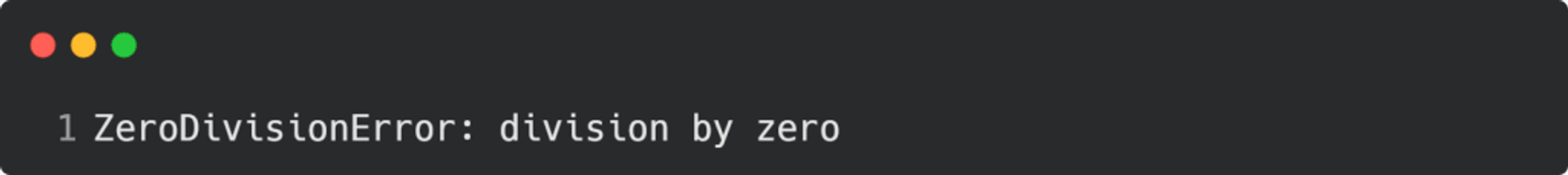 Yukarıdaki kodda, sıfıra bölme hatası meydana gelir ve Python aşağıdaki hata mesajını üretir: