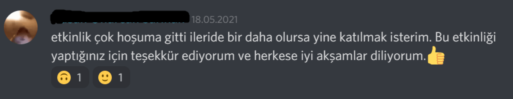After training, we sent 90Pixel a shortlist of 15 candidates for each technology (Node.js and React.js). 90Pixel team evaluated their learning progress, case quality, motivation for the program, and interaction with others on Discord. At the end of the interviews, the participants of 90Pixel Academy 2021 (4 people for frontend, 4 people for backend) were ready! Some participant comments and a screenshot of their interactions on the Discord channel are below: